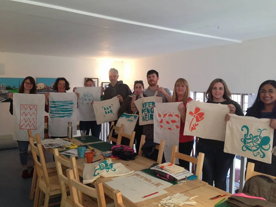 Learn the basics of screen printing onto textiles in this fun beginners class where you will learn how to use paper stencils to create a simple yet unique design which you can then choose to print onto a linen tea towel or organic cotton tote bag. The course covers how to prepare and create your design, printing and finishing your final fabric pieces.